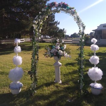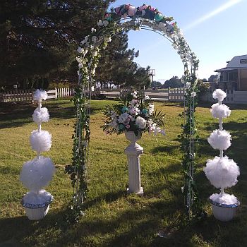 I enjoy creating custom decor items, rental backdrops I’ve fabricated, table decor items, and other custom floral pieces.