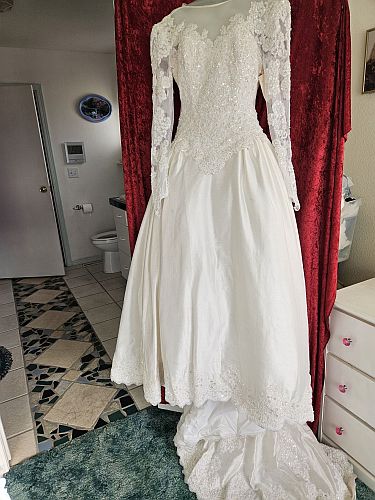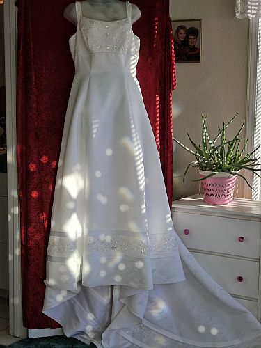 These wedding gowns are great for a bride on a budget… each dress is less than $100. Don’t forget your veil. I’m here to help!